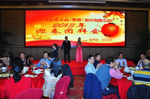 緊接著,在熱烈的掌聲祝福中,甘化公司董事長兼總裁麥慶華先生以及各公司高管進行頒獎,對股份公司及德力光電的優(yōu)秀員工、生物中心的先進管理者和先進工作者進行表彰。然后,公司領(lǐng)導集體上臺敬酒。隨著禮炮響亮地鳴放,萬眾期待的團拜晚宴正式開始了!